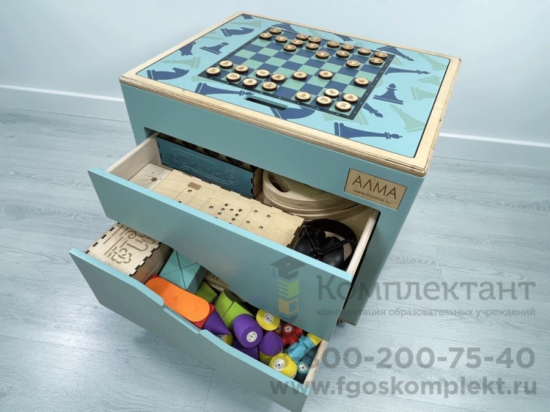 Комплектация: Световой стол Песок для рисования Шумовой набор Шумотрон Трафаретки АЛМА Набор Геобордов АЛМА 3 в 1 Сенсорные пластины АЛМА Макки 37 Нейротренажер ручной балансир 5 в 1 Первая книга АЛМА Шахматы/шашки Беспроводная музыкальная система Набор методических пособий и заданий.